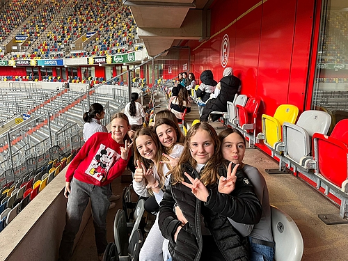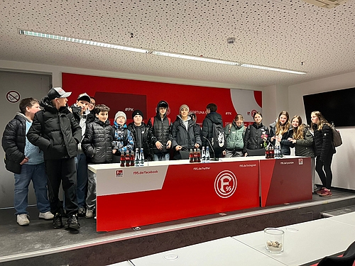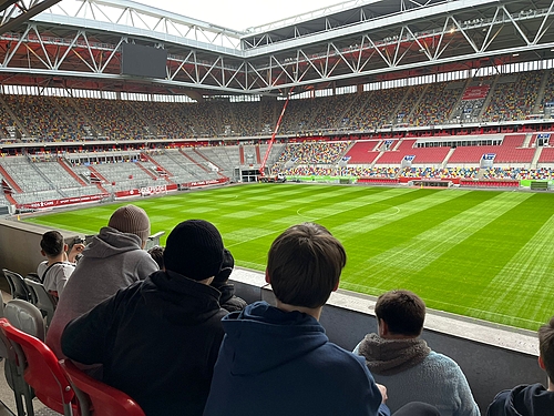 Nach den Karnevalstagen nahm unsere Klasse 7b an einem zweitägigen Workshop der „Zweitzeugen“ teil. Dafür wurde das Klassenzimmer gegen einen ganz besonderen Lernort getauscht. Im Stadion von Fortuna Düsseldorf erfuhren die Schüler die persönlichen Lebensgeschichten von Holocaust Überlebenden und Opfern und dass auch der Fußball nicht frei von Antisemitismus ist. Umso wichtiger erschien es deshalb allen Beteiligten Lösungen zu erarbeiten, um gegen Diskriminierung vorzugehen, sodass am Ende der zwei Tage ein Fazit gezogen werden konnte: Misch dich ein, schau nicht weg!