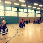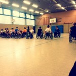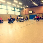Schließlich wurde noch Rollstuhlbasketball gespielt, was allen viel Spaß gemacht hat. Gerne hätten sie noch länger gespielt. Im Schlussgespräch beeindruckten unsere Gäste an beiden Tagen mit ihrem Optimismus und ihrer Gelassenheit, mit denen sie von ihrem Leben erzählten und den Blick auf eine wichtige, grundsätzliche Lebenseinstellung eröffneten: nicht aufzugeben, wenn Handicaps auftauchen, sondern kreativ nach (kleinen) Lösungen zu suchen. So gelingt es, sich „vorwärts zu bewegen“, im übertragenen Sinn, sich zu „entwickeln“.