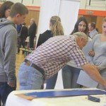 Auch in diesem Jahr hat wieder ein Berufsparcours in der Dreifachsporthalle der Realschule Hackenbroich in Dormagen stattgefunden. Am 19.09.2013 konnten Schülerinnen und Schüler der neunten Klassen von insgesamt fünf weiterführenden Dormagener Schulen mit den Vertretern von etwa 25 Firmen über ihre beruflichen Vorstellungen sprechen. Die Unternehmen hatten umfangreiches Material und vielfältige Arbeitsproben für die Jugendlichen vorbereitet. Beides stieß auf starkes Interesse. Auf diese Weise konnten viele Kontakte geknüpft und zahlreiche Informationen aus den jeweiligen Branchen an die zukünftigen Auszubildenden weitergeben werden.