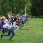 Alle Kinder waren begeistert bei der Sache, auch als es um den Versuch ging: wer läuft schneller – Hund oder Kind? Und alle waren beeindruckt, dass die Hunde weit vor den Kindern im Ziel ankamen, selbst bei deren großem Vorsprung am Start.