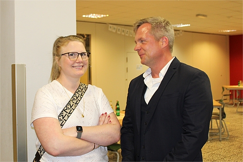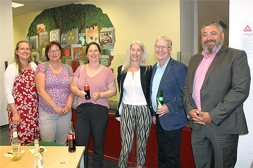 Die stellvertretende Bürgermeisterin von Dormagen Katja Creutzmann erinnerte an den Werdegang von Herrn Moritz und außerdem an ihre Zeit als Elternpflegschaftsvorsitzende an der RSH. Dabei betonte sie den Umgang auf Augenhöhe, den sie sehr zu schätzen wusste. Außerdem lobte sie Herrn Moritz’ großes Engagement für die Stadt und seine ehrenamtliche Arbeit. Sie hoffe, auch in Zukunft darauf zählen zu dürfen.