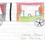 „Heute haben wir ein Bustraining gemacht. Es war toll, denn wir haben eine Vollbremsung gemacht. Und ich fand es toll, dass der Polizist so nett war und Frau Thoneik ein Foto gemacht hat, als wir die Beine über die Lehne baumeln ließen und der Polizist dagegen gelaufen ist. Bei einer Vollbremsung würde das einem die Beine brechen! Ich fand alles toll.“ (Martha).