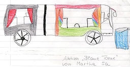 „Das Bustraining war echt abgefahren. … Bei der Vollbremsung sind fast alle hingefallen. Im Bus sollte man sich immer festhalten, egal ob man sitzt oder steht. Es kann jederzeit eine Vollbremsung kommen.“ (Duygu)