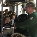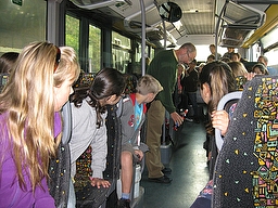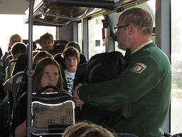Unsere Frischlinge hatten heute (28.09.2011) ein „Life-Bustraining“. Herr Mehl von der Polizei und Frau Theelen vom Busunternehmen Hillmann kamen mit einem Bus zu Schule und haben den SchülerInnen klar gemacht, was passieren kann, wenn man sich an der Bushaltestelle und im Bus nicht ordentlich verhält. Vorher hatten die KlassenlehrerInnen Frau Altenrath, Frau Brenner, Frau Roller und Herr Hetzer im Unterricht die Theorie für die Busschule gebüffelt. Unsere Sozialpädagogin Frau Thoneik war auch dabei.