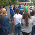 Vom 12. bis 14. Juni nahm unsere gesamte Stufe 9 am Berufswahlcamp teil, das durch die Stiftung „Zukunft fördern“ mit 6000 EURO finanziert wurde. Drei Tage lang standen nicht Mathe, Musik oder Geschichte auf dem Stundenplan, sondern zahlreiche Übungen rund um das Thema „Team- und Gemeinschaftsbildung“. Egal ob „der Weg durch den Säureteich“, „Wie platziere ich eine ganze Klasse auf einer kleinen Plane“ oder „Wie kriege ich blinde Roboter unter Kontrolle“: Nur im Team waren die Aufgaben zu lösen. Jeder Einzelne konnte zum Gelingen aber auch zum Scheitern beitragen. Schnell zeigte sich, wie viel Teamgeist in den einzelnen Klassen herrschte. „Einzelkämpfer sind hier nicht gefragt, ebenso wenig wie in der Berufswelt“, stellte denn auch einer der Trainer von „360°“, der mit der Durchführung beauftragten Agentur, fest. Fester Bestandteil aller Übungen, die von den Trainern sehr professionell begleitet wurden, war das anschließende Feedback durch die Schülerinnen und Schüler, bei dem die Ursachen für Erfolg oder Misserfolg reflektiert wurden.