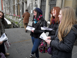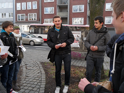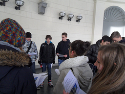 Eine der zehn Gruppen hat die Hin-und Rückreise organisiert. So fuhren wir morgens mit der Bahn nach Aachen. Dort angekommen, erklärte uns eine zweite Gruppe die geografische Lage Aachens. Nun ging es zu den einzelnen Sehenswürdigkeiten. Vom Bahnhof aus führte uns eine weitere Gruppe an den Sehenswürdigkeiten vorbei bis zum Katschhof. An den jeweiligen Sehenswürdig-keiten erzählten uns die dazugehörigen Gruppen interessante Dinge über diese.