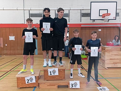 Auch bei den Jungen der 8. Klassen entwickelte sich von Anfang an ein spannendes Turniergeschehen. Schon in den ersten Spielen kristallisierten sich mit den Teams der Klassen 8B und 8C die beiden Favoriten heraus, die durch ihr schnelles Zusammenspiel, ihre Treffsicherheit und großen Einsatz überzeugten. Doch auch die übrigen Mannschaften zeigten starke Leistungen und so erkämpfte sich die 8D einen sehr guten vierten Platz. Mit einigem Abstand folgte das Team der 8A auf dem dritten Platz.