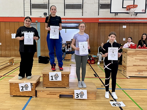 Auch die Mädchen der siebten Klassen zeigen einen engagierten und fairen Wettkampf. Bereits in der Hinrunde kristallisierte sich die 7C als klarer Favorit heraus, die anderen Teams lagen noch dicht beieinander. In der Rückrunde konnte die 7C alle Spiele gewinnen und wurde verdienter Turniersieger. Das Team der 7D sicherte sich den zweiten Platz, es folgten die 7B auf Platz drei, knapp dahinter die 7A auf dem vierten Platz.