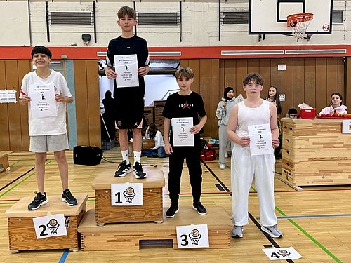 Auch die 7. Klassen zeigten nicht minder interessante, bei den Jungen teilweise recht ausgeglichene Spiele. Im Spiel um den dritten Platz lieferten sich die 7A und die 7C ein Duell auf Augenhöhe, die 7A wurde schließlich vierter, die 7C belegte mit knappem Vorsprung Platz drei. Im Finale standen sich die Teams der 7B und der 7d gegenüber. Beide überzeugten mit starken und fairen Leistungen. Mit nur einem Punkt Vorsprung sicherte sich die 7B den Sieg.