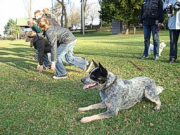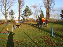 Wir sind gemeinsam mit der Klasse im Bus nach Delhoven zum Hundeplatz gefahren. Dort haben wir zuerst in einem Häuschen zusammen gefrühstückt. Anschließend kam die Hundetrainerin Nicole mit dem Hund Aron zu uns. Sie hat uns einiges über Hunde erzählt, z.B. wo die Knochen liegen, wie man Hunde trainiert und erzieht, was sie fressen und dass sie gefährlich werden können. Später sind wir gemeinsam auf den Trainingsplatz gelaufen. Dort durften einige von uns mit einem Hund durch einen Parcours (Spielplatz für Hunde) gehen. Zuletzt kam noch eine Trainerin namens Yvonne dazu. Sie hat uns vorgeführt, wie man Hunde für die Polizei ausbildet, z.B. wie der Hund einen Verbrecher aufspüren kann, ihm hinterher läuft und ihn aufhält. Dabei wurde auch gezeigt, wie fest und gefährlich ein Hund zubeißen kann. Wir haben an dem Tag wirklich sehr viel gelernt und wissen, dass man immer vorsichtig mit fremden Hunden umgehen soll. Niemals schnell auf ein fremdes Tier zulaufen, denn es könnte sich erschrecken und ungewollt jemanden stark verletzen. Der Vormittag war sehr schön und interessant.