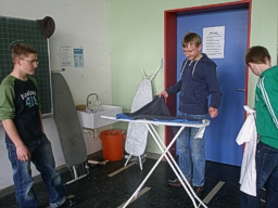 „Sowas brauche ich nicht zu können, Mädchen stehen doch auf Machos“ – so die Äußerung eines Jungen aus der Jahrgangsstufe 8, als er „Frauenarbeit“ machen sollte. Es gab Babys zu wickeln (Puppen natürlich), T-Shirts zu bügeln, Fenster zu putzen, Knöpfe anzunähen und Küchenarbeit zu machen. Zur Belohnung gab es natürlich danach etwas zu essen.