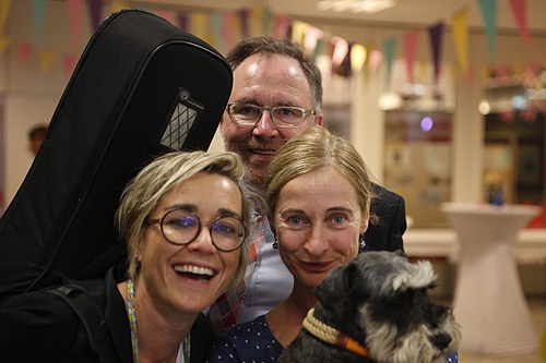 Inwieweit die Digitalisierung in Schule Einzug gehalten hat und wie Schule vielleicht in Zukunft aussehen könnte, war dann Thema in drei anschließenden Gesprächsrunden, für die alle am Schulleben Beteiligten zusammenkamen. Moderiert von Diplom-Pädagoge Matthias Bartscher kam es zu einem unterhaltsamen Austausch von Visionen. Dabei waren sich am Ende alle einig, dass unsere Schule die letzten 50 Jahre ein toller Ort war und immer noch ist, in den man auch in Zukunft investieren muss.