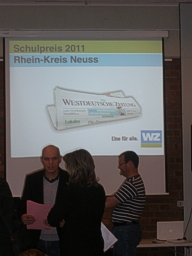 Als der Anruf kam, konnten wir es erst gar nicht glauben, aber heute haben wir ihn tatsächlich bekommen – den Preis für das zweitbeste Schulprojekt aller weiterführenden Schulen im Rhein-Kreis Neuss. Ausgeschrieben wurde dieser Wettbewerb von der Westdeutschen Zeitung und der Firmengruppe ElectronicPartner. Beteiligt haben sich an dem Wettbewerb zwei Drittel aller Schulen im Rhein-Kreis Neuss.