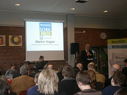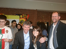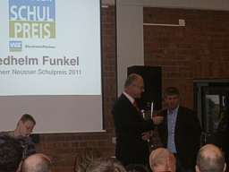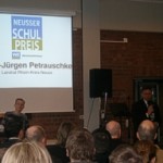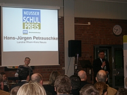 Zwölf Schüler aus den PP-Gruppen der 9. und 10. Klassen sowie katholische Schülerinnen und Schüler aus der 9 c waren bei dem feierlichen Festakt in der Neusser Förderschule Nord dabei. Auch dabei waren unser Landrat (Hans-Jürgen Petrauschke), der Chefredakteur der Westdeutschen Zeitung (Martin Vogel), Vertreter von ElectronicPartners (Helga Falk-Zarse) und der Fußballtrainer Friedhelm Funkel (VfL Bochum) als Schirmherr der Veranstaltung. Und natürlich Herr Müller-Breuer vom Jugendmigrationsdienst für den Rhein-Kreis Neuss, mit dem wir die beiden Projekte an unserer Schule und im Kinder- und Jugendtreff St. Katharina durchgeführt haben.