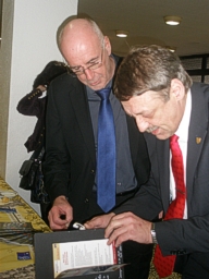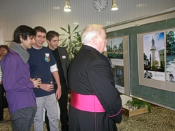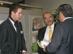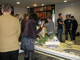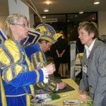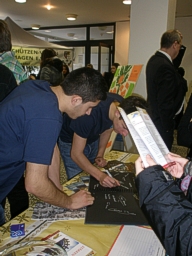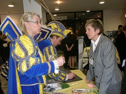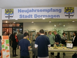 Beim Neujahrsempfang des Bürgermeisters am 23.1.2011 in der Aula des Norbert-Gymnasiums in Knechtsteden war es rappelvoll und die Rede des Bürgermeisters war nicht gerade leicht verdaulich. Es ging um Städteplanung, Infrastruktur, Finanzprobleme – und das ziemlich lang. Nicht alle anwesenden Erwachsenen konnten sich so lange konzentrieren, aber unsere Vertreter hielten tapfer durch. Unermüdlich waren sie auch beim Verteilen der Geschenke, die wir für immerhin 300 der rund 500 Gäste vorbereitet hatten: Kleine Tütchen mit Möhren und Schokoladentalern – Symbole für unsere beiden Fotoausstellungen, die wir während des Empfangs im Foyer des Gymnasiums präsentieren durften. Da waren es zum einen um „Wurzeln“ gegangen, zum anderen um persönliche „Schätze“.