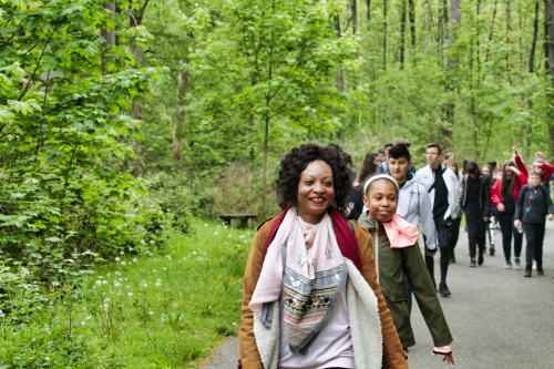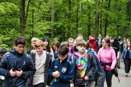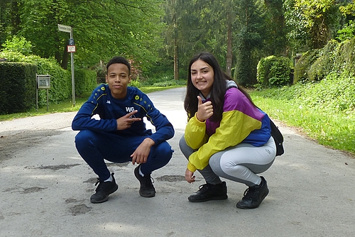 Nach dem Maifeiertag waren alle Schülerinnen und Schüler ausgeruht und gut gelaunt, auch wenn es nicht besonders warm war. Trotzdem kamen viele beim Wandern durch den Chorbusch und die Blechhofsiedlung ins Schwitzen, zumal manche sogar zeitweise joggten. Damit sie durchhielten, versorgten Eltern und Lehrer die Kinder großzügig mit frischen, sehr leckeren Äpfeln vom Latourshof und Getränken. Und wir können stolz darauf sein, dass die Wanderstrecke am Ende des Sponsored Walks für „müllfrei“ erklärt werden konnte, dank unserer Helfer und Lehrer, die auf Fahrrädern unterwegs waren und noch den kleinsten „Schnipsel“ aufsammelten.