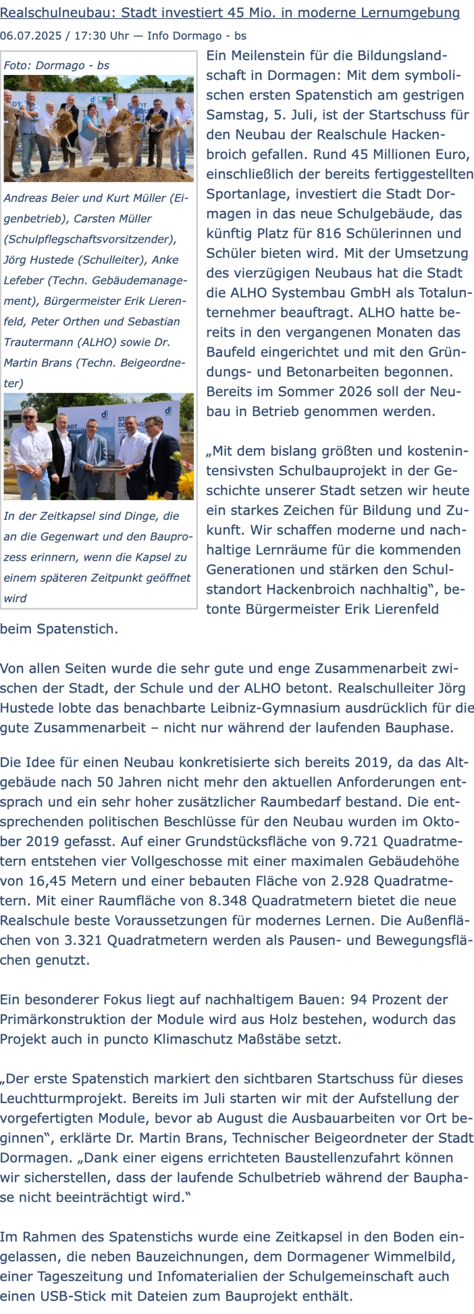 Realschulneubau: Stadt investiert 45 Mio. in moderne Lernumgebung Quelle: Dormago vom 06.07.2025 Webmaster2025-07-10T18:16:33+02:009. Juli 2025|