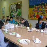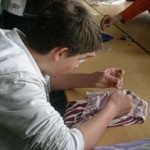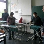 Während die eine Gruppe in der Küche eine Mahlzeit zubereitete und den Tisch mit Servietten dekorierte, waren andere mit Rollenspielen zum Thema „Typisch männlich, typisch weiblich?“ beschäftigt oder wurden in die Geheimnisse des Bügelns, Fensterputzens und Knöpfchen Annähens eingeweiht. Dabei war auch manch ein Pflaster nötig. Originalton Herr Müser: „Du musst den Knopf an den Stoff nähen, nicht an Deinen Daumen!“ Die meisten Schüler waren an ihrem Boys‘ Day mit Feuereifer bei der Sache und freuten sich am Ende über ihren Haushalts-Pass.