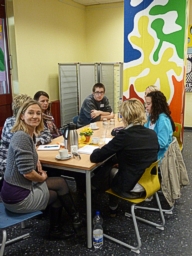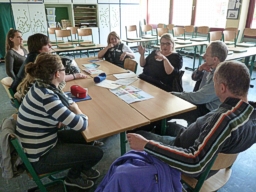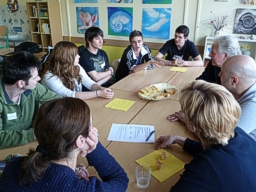 Unterstützt wurde die Ideenfindung durch Frau Ulrike Reichelt, Ingenieurin und Kunstpädagogin mit viel Erfahrung im Bereich Schulsanierung. Sie zeigte beeindruckende Beispiele aus anderen Städten. Beflügelt von so viel Schönheit brüteten Schüler, Lehrer und Eltern gemeinsam viele Vorschläge aus – für die Flure, die Klassenräume, den Schulhof. Einiges davon werden wir sicher in Eigenregie hinbekommen; für anderes brauchen wir die Hilfe der Stadt Dormagen. Weil die uns aber noch nie im Stich gelassen hat, sind wir auch in punkto „Schönheitskur“ ganz schön optimistisch.