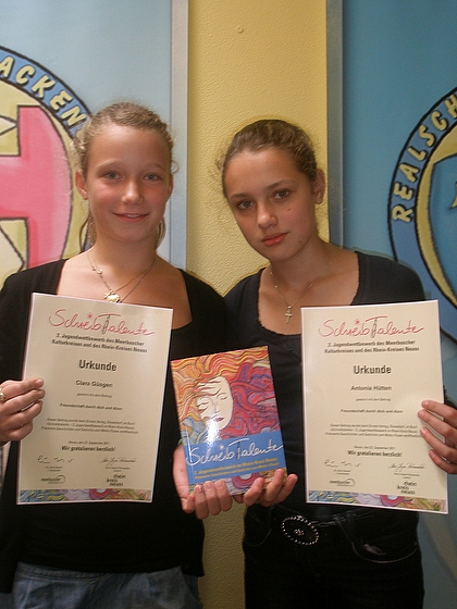 „Schreiben ist leicht. Man muss nur die falschen Wörter weglassen“, fand Mark Twain – und schrieb ein erfolgreiches Buch nach dem anderen. Ob Antonia Hütten und Clara Güsgen aus der 7a auch einmal so weit kommen, steht in den Sternen. Fest steht aber, dass die von ihnen gemeinsam geschriebene Geschichte über eine Mädchenfreundschaft den Juroren des Schreib-Talente-Wettbewerbs so gut gefallen hat, dass sie jetzt in einem Buch abgedruckt ist. 574 Geschichten und 196 musste die Jury dieses Jahr bewerten und in allen ging es irgendwie um das Thema „Fluss“.