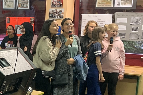 Die Jahrgänge 6-10 blickten zurück auf 50 Jahre Weltgeschichte: Mondlandung und Mauerfall, Monchhichi und Michael Jackson. An alles war gedacht und mit viel Herzblut umgesetzt worden. So verwunderte es nicht, dass viele Besucher mit einem Lächeln durch die Räume schlenderten.