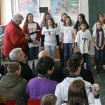 In achtzehn Sprachen hatten Frau Fröhlich und Schüler der 6c und der 8c unsere Gäste begrüßt – sogar auf Swahili. Arash erinnerte an den Wert von Freundschaft vor allem in schwierigen Zeiten und sang unplugged das wunderbare „Stand by me“. Dass Rassismus an unserer Schule nichts verloren hat, unterstrichen auch Büşra und Angelo noch einmal nachdrücklich.