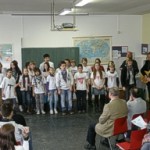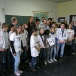 Und welches Lied hätte besser gepasst zu diesem Anlass und zu der schönen Stimmung als „Kumm erin! Du bes jän gesinn!“ von und mit Janus Fröhlich, Henning Krautmacher und Peter Werner von den Höhnern. Die Kinder der 6c und Tina van Wickeren werden sicher nie vergessen, dass sie dieses Lied mit unseren Paten am Ende der Feier singen durften. Ganz am Schluss gab’s dann noch Höhner-Autogramme auf die selbst gestalteten „Respekt-T-Shirts“. Bürgermeister Hoffmann hat Recht: Mit diesen engagierten Streitern für Toleranz und Menschlichkeit haben wir „den Vogel abgeschossen“.