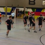 Nach ihren unerwarteten Siegen bei der Kreismeisterschaft, Bezirksvorrunde und Hauptrunde setzte sich der Siegeslauf der von Georg Müser trainierten Hackenbroicher Handballjungen auch im Landesfinale fort. Im ersten Spiel der Endrunde war ihnen die Mannschaft der Gesamtschule Marienheide, die aus Spielern der B-Jugend des VFL Gummersbach bestand, zugelost worden. In einem packenden Spiel, in dem die Führung bis zur Pause immer wieder wechselte, gewannen die Hackenbroicher Handballer auch durch die stimmgewaltige Unterstützung von 40 mitgebrachten Fans mit 18:16 (11:10) Toren.