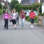 Ein Verlust war zu beklagen: die Wanderschuhe von Herrn Hetzen überstanden diesen Sponsored Walk nicht. Die Sohle war durchgelaufen – bei dem Tempo seiner Schützlinge kein Wunder. Auch die Paten aus den neunten Klassen, die „ihre Fünftklässler“ begleiteten, staunten, wie tapfer und mit wie viel Freude diese vorweg liefen. Wenn das nicht ein Beweis dafür ist, dass es Spaß macht, SchülerIn an der Realschule Hackenbroich zu sein…