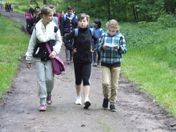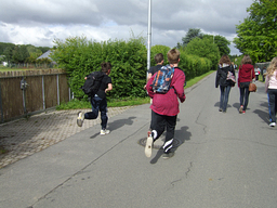 Ein Verlust war zu beklagen: die Wanderschuhe von Herrn Hetzen überstanden diesen Sponsored Walk nicht. Die Sohle war durchgelaufen – bei dem Tempo seiner Schützlinge kein Wunder. Auch die Paten aus den neunten Klassen, die „ihre Fünftklässler“ begleiteten, staunten, wie tapfer und mit wie viel Freude diese vorweg liefen. Wenn das nicht ein Beweis dafür ist, dass es Spaß macht, SchülerIn an der Realschule Hackenbroich zu sein…