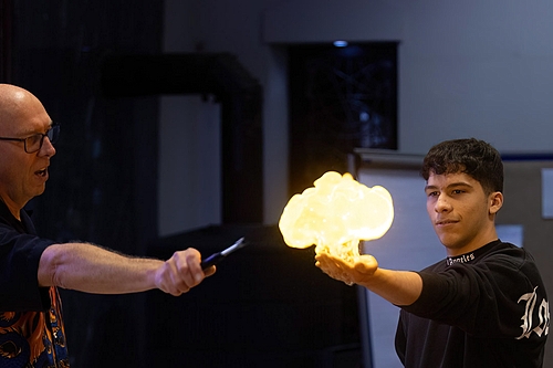Beim anschließenden Stationenlauf begeisterte vor allem die aktive Mitwirkung bei den Versuchen. Unsere Schüler zögerten außerdem nicht, Fragen zu stellen und mit den jeweiligen Referenten über die Rolle des Wasserstoffs in der Zukunft zu diskutieren.