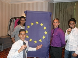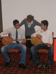 Mindestens genau so beeindruckt waren anschließend die rund 200 Teilnehmerinnen und Teilnehmer der Regionalkonferenz von unseren Neuntklässlern. Die präsentierten nämlich ihr Projekt wie die Profis – interessant und informationsreich, witzig und lebendig. Can Arman und Görkem Basdegirmenci spielten dazu völlig cool auf ihrer Saz, einem türkischen Saiteninstrument.